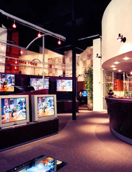In the store interior we created fully equipped mini-theaters. Each had professional electrical and lighting systems along with a sophisticated sound attenuation infrastructure so each was acoustically buffered from the others.